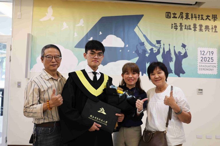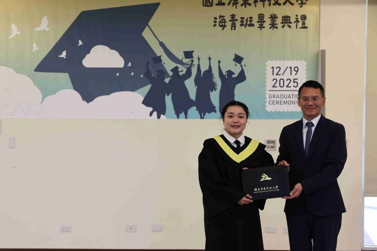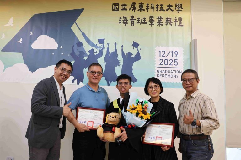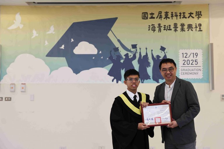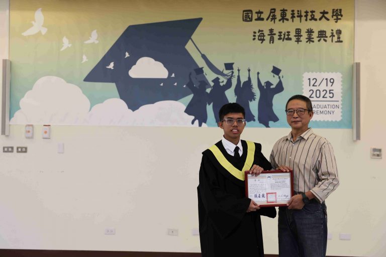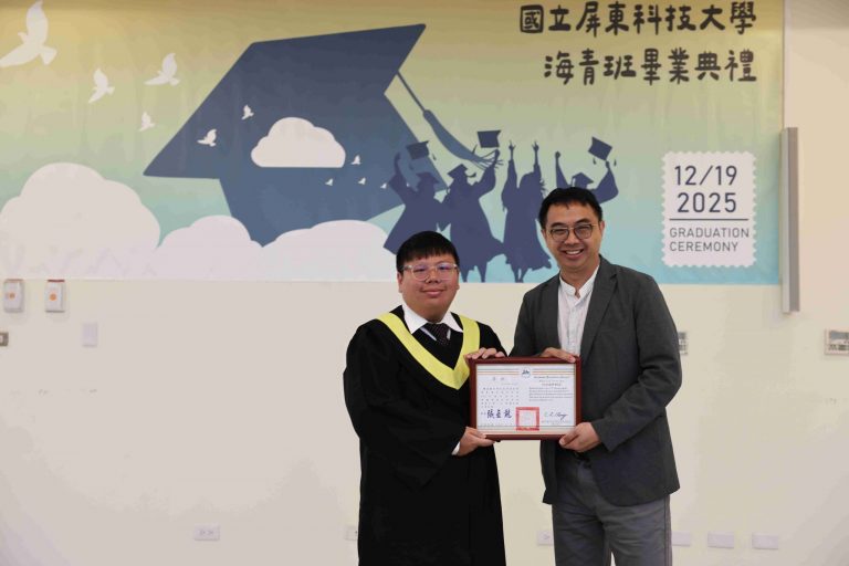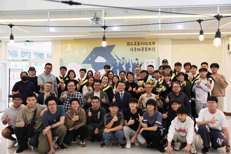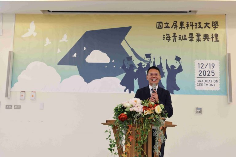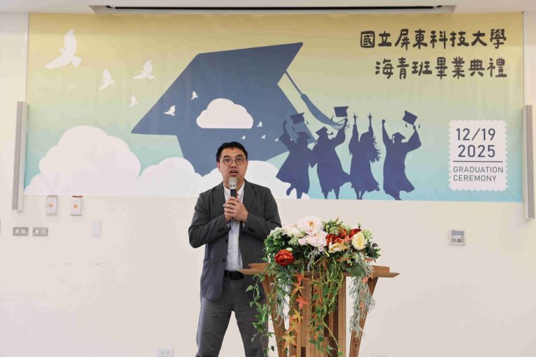 The Taiwan Overseas Community Affairs Council (OCAC) regularly organizes the Overseas Youth Vocational Training Program to promote Taiwan’s high-quality vocational education and provide overseas Chinese youth with opportunities to acquire professional skills. National Pingtung University of Science and Technology (NPUST) arranged a Department of Plant Industry – Tropical Agriculture and Horticulture Program in the previous academic year to help these students master various techniques related to refined tropical agricultural production. On the morning of December 19th, a graduation ceremony was held for the students at the NPUST Big Data Center. Approximately 40 attendees, including graduates, parents, faculty, and current students, gathered to witness the occasion and support the students as they prepare to move to a new stage in life.