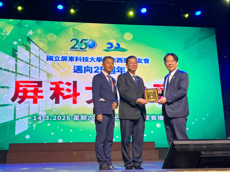 From March 13 to 16 (2026), president Chin-Lung Chang of National Pingtung University of Science and Technology (NPUST) led a delegation to Batu Pahat, Malaysia to participate in the 2nd Agriculture, Forestry, Fishery, and Animal Husbandry Exhibition. Hosted by the NPUST Alumni Association of Malaysia, the event served as a platform to showcase the university’s achievements in agricultural technology, animal biotechnology education and R&D, while further expanding its international cooperation network in Southeast Asia.