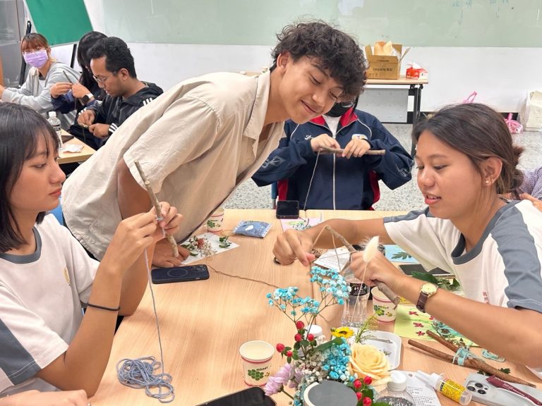 講師專業、細心將活動場地佈置成「植物工作坊」,一進入此空間,便已感受到植物帶來的「療癒效果」,使在校學生與外籍學生共同擁有獨特的體驗。透過各種的實作,學生相當投入課程,除了達到人與人的互動與交流外,也確實讓學生從大自然植物中得到療癒效果,練習專注力與復健心靈。