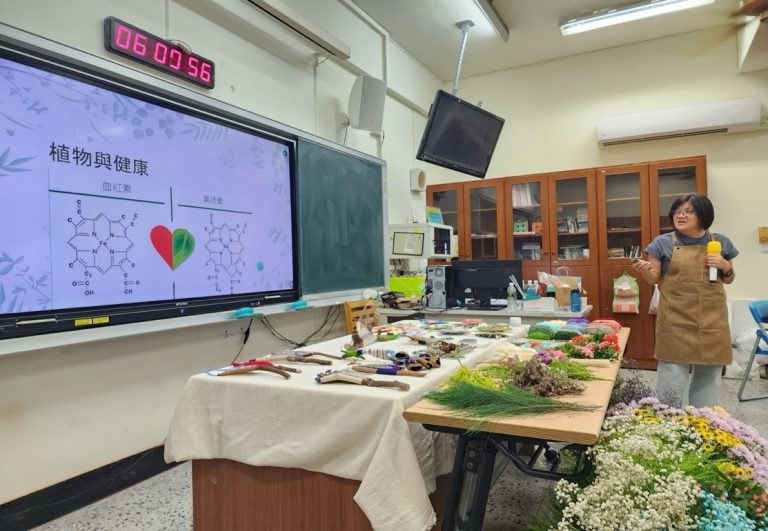 「園藝治療」是一種輔助治療專業,邀請到園藝治療師蔡政鴦老師至本校,教導潮州高中同學及本校外籍生從「細說節氣」開始,接著認識「五行」、植物生命」、現場飲用「花草茶包」,並實際操作「小組盆栽」與「個人樹枝編織」等課程內容,希望透過植物的體驗,讓學生學習抒發與自我表達,帶來身心效益。