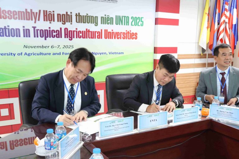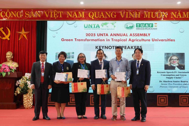 11月6日至7日我校張金龍校長與石儒居國際長出席「2025年熱帶農業大學聯盟(UNTA)年會」及越南太原農林第六屆全國動物與獸醫科學研討會。本校為熱帶農業大學聯盟(University Network for Tropical Agriculture, UNTA)之永久秘書處,協助聯盟交流與推動年度合作。今年UNTA 年會由太原農林大學主辦,以「熱帶農業大學的綠色轉型(Green Transformation in Tropical Agricultural Universities)」為主題,邀集來自越南、泰國、印尼、印度、馬來西亞、美國關島及台灣等會員學校代表透過實體及線上方式參與。