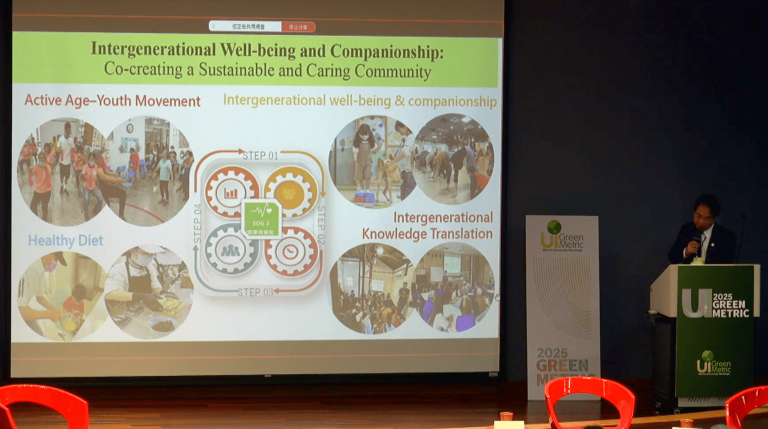 UI GreenMetric 評比涵蓋「基礎建設」、「能源與氣候變遷」、「廢棄物」、「水資源」、「交通運輸」及「教育」六大指標,總分滿分為10,000分。本校今年以9,172.5分刷新歷年紀錄,較去年大幅進步122.5分,其中以「廢棄物處理」及「水資源」指標表現最為亮眼,充分展現學校在校園循環經濟、資源效率與永續治理上的深厚基礎與長期投入。