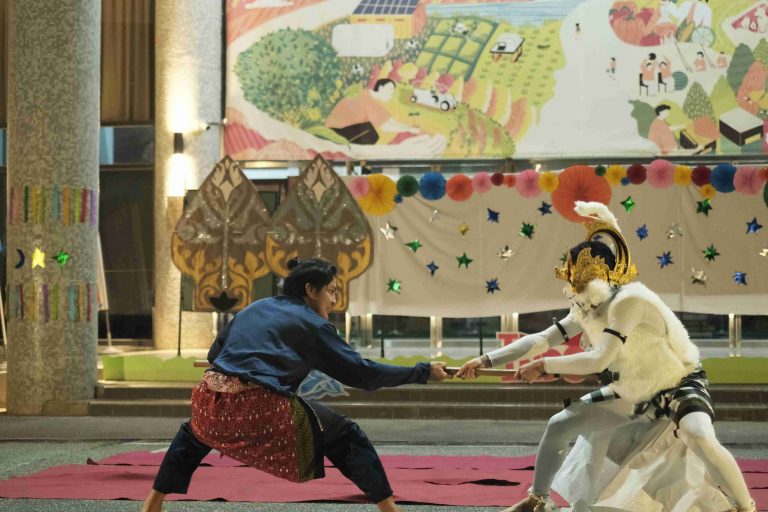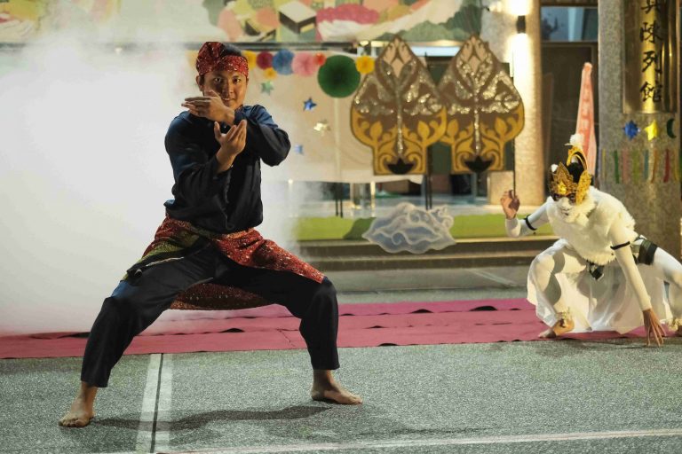 隨後進入正式典禮與表演節目,由安格隆樂團演奏〈Tanah Airku〉等印尼歌曲開場,巧妙融入華語歌曲,展現文化交流的融合精神;接續則有印尼傳統武術Silat,以及象徵峇里島文化的Kecak火舞登場。Kecak舞蹈源自峇里島,結合宗教、象徵與戲劇元素,演繹《羅摩衍那》史詩中羅摩王子在哈努曼與猴軍協助下,營救妻子悉多對抗羅波那的經典橋段,表演張力十足,深獲觀眾讚賞;活動最後以融合現代音樂與舞蹈的印尼當代舞作為壓軸,為文化節畫下熱情洋溢的句點。